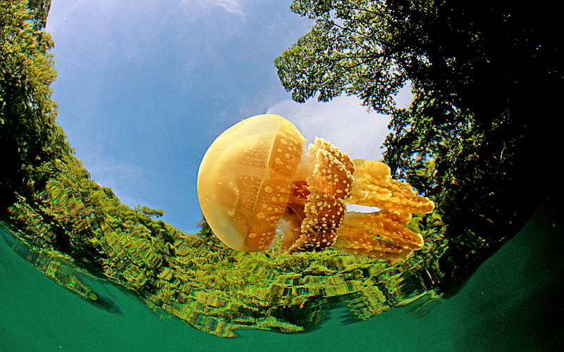“水母湖”的存在,更是颠覆了所有关于海洋的想象,在一个与世隔绝的咸水湖中,成千上万只无毒的金色水母日复一日地追随阳光。当你浮潜其中,这是一次与史前精灵共舞、梦境般的邂逅。可惜在2016年遭遇厄尔尼诺现象导致水母大量死亡,现在正在慢慢恢复中。