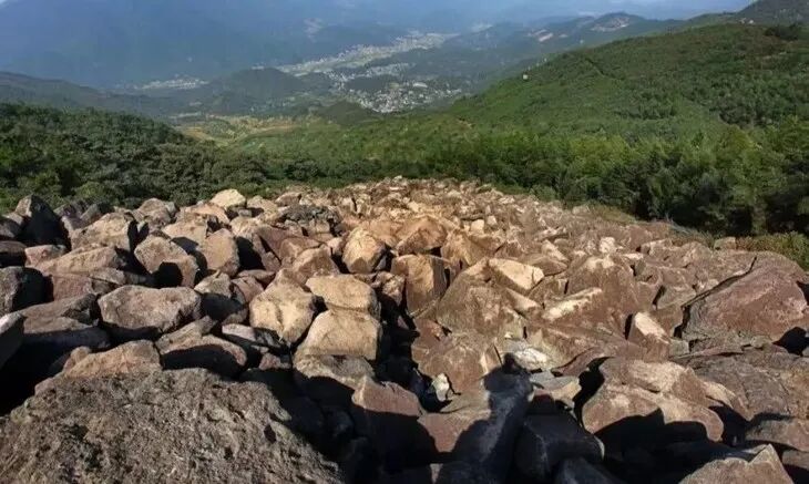 约2小时后,我们到达上虞覆卮山脚东澄村,整队从这里上山。沿途欣赏高山上的古梯田,每一块梯田都是由古冰川岩块砌筑而成,让人不由得佩服古代劳动人民的智慧。春暖花开之时,层层的梯田种满了油菜花,金黄色和绿色交错杂织,犹如世外桃源般的田园风光,让每个来这里的人都疯狂地驻足拍照。一路上山,不知不觉就到了冰川石浪,这里有三条“川”字型的石河,被地理爱好者认定为第四纪冰川遗迹,放眼望去,漫山遍野的巨大石块,重重叠叠,浩浩荡荡,爬起来绝对爽翻天。一路的手脚并用,大家可以互相拍小伙伴们爬石头的糗照。终于到达覆卮山山顶了,我们寻找一个合适的地方,休息、吃午餐、晒太阳,享受自然的悠闲。