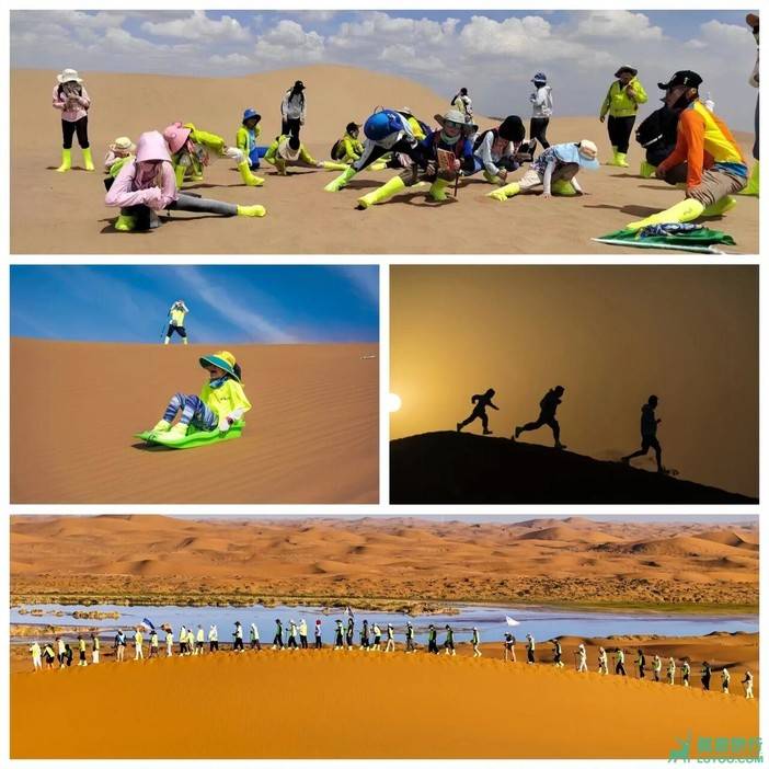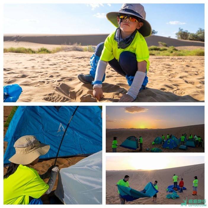 中午11:30左右到达餐厅用餐。稍作休息之后,我们前往的入沙点,预计在下午12:30,开始热身,分发物资开始出发,孩子们跟随老师再次学习沙杖的调节和使用、魔术头巾的使用、沙套的穿戴方式。随后举行出征仪式,拱门、龙鼓、刀旗、出征口号仪式感样样俱全!