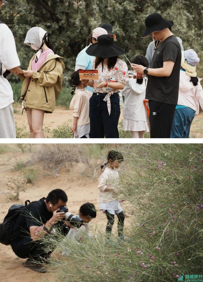 8:00-11:30 今日上午完成从月亮湖到漠丽禾湖的8公里徒步,一路上沙丘也不是很大,而且我们是顺着沙漠的纹路行走,路上领队会带领小朋友根据沙漠动植物手册,深度的学习沙漠动植物知识