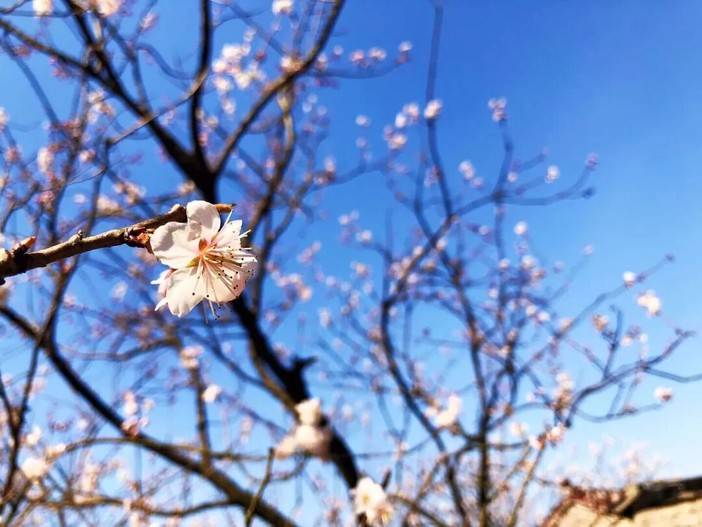 走进村子可以,看到每棵樱桃树都变成了一团白花花的 “棉花糖”,而樱桃谷的山则被“棉花糖”包裹着。
