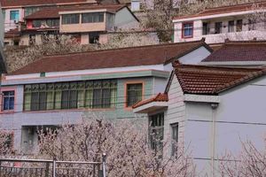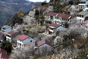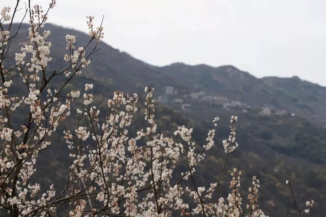 村子建在山崖上,村里几条蜿蜒的马路穿梭在农家与田园之间,村里各家小院的房前屋后都种满樱桃树。这个山村,已经被白色雪花般的樱桃花包围,村民的住宅,因此变得若隐若现。