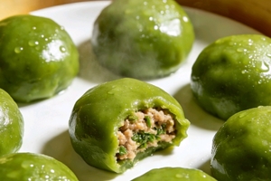 青团是浙江省传统节令小吃之一。中国人最讲究“不时不食”,说的就是在合适的时令吃合适的食物。清明前后食青团,能驱邪禳毒,这不仅是敬畏自然,也是享受自然。
