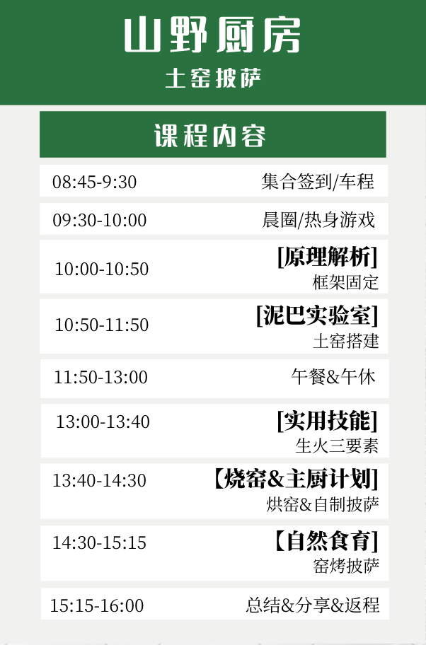 我们将与孩子们一起共同搭建土窑、烧窑、自制披萨…